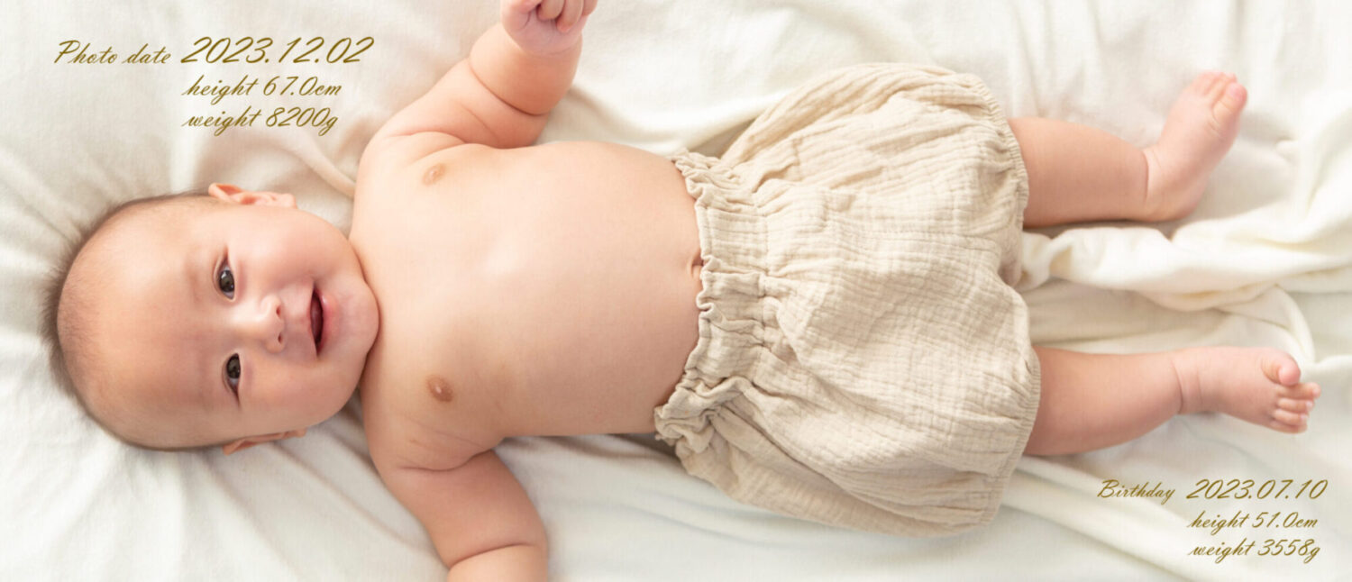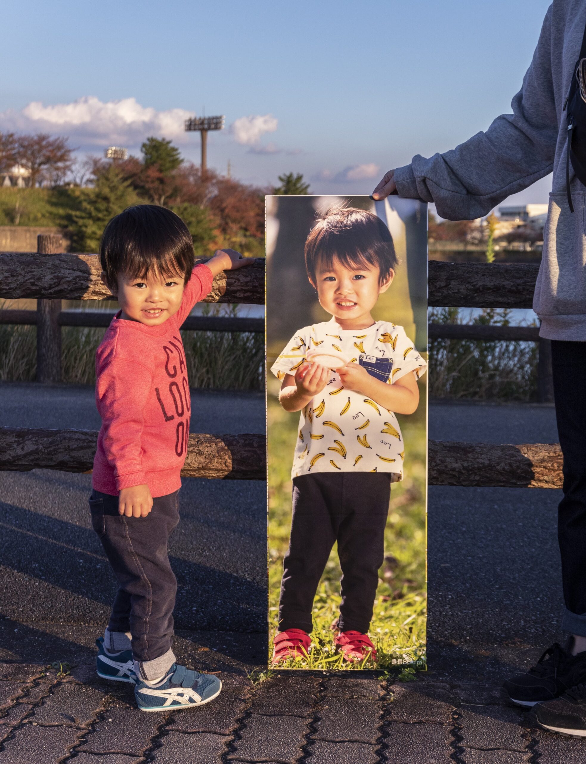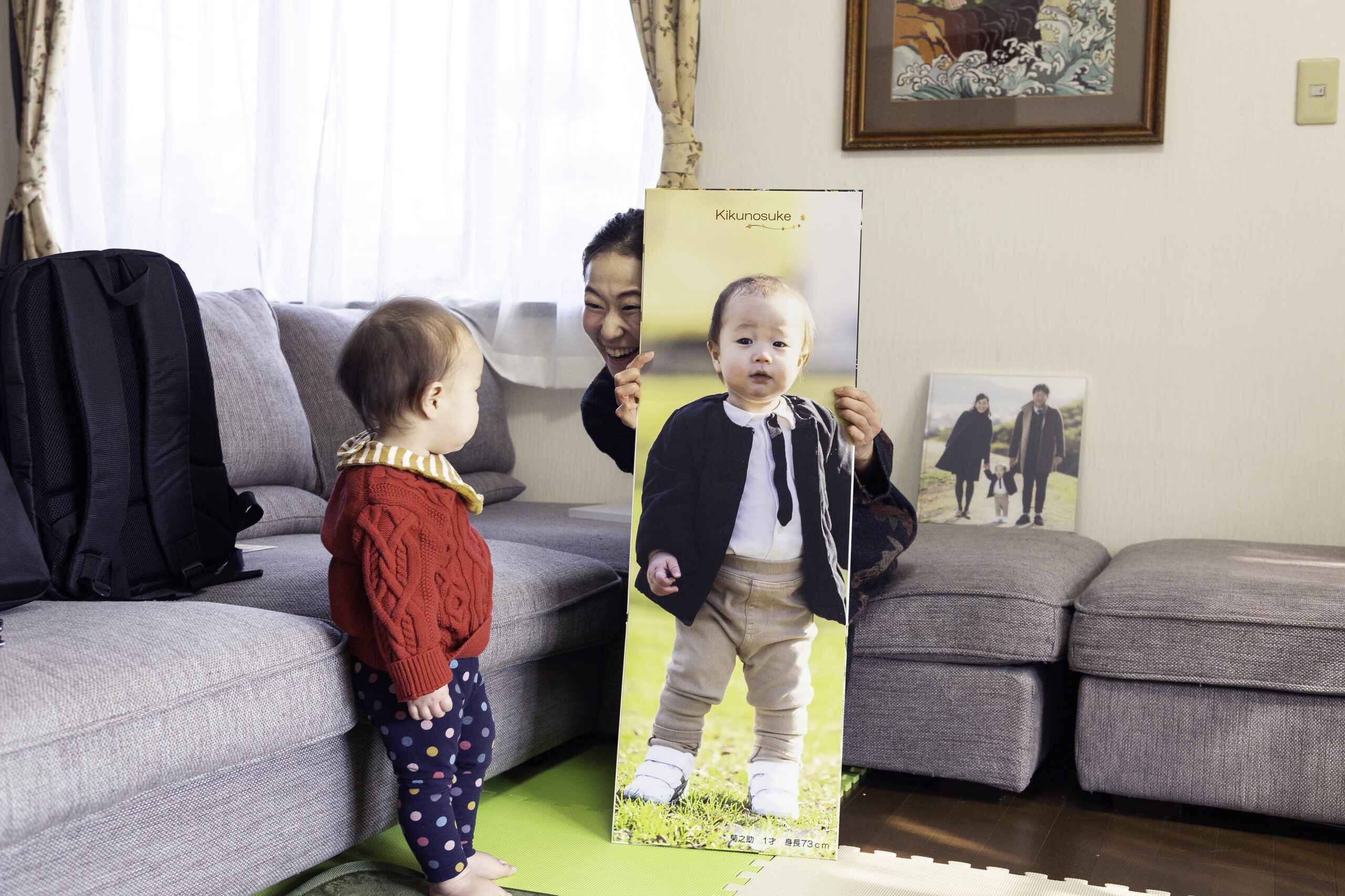 赤ちゃんの“今の大きさ”を、そのままのサイズで残せる等身大プリント。一般的なフォトアルバムでは到底できない、実寸そのものの記録です。将来、手に取って見返したとき「こんなに小さかったんだ」と手に取るように実感できます。記憶ではなく“体感”で蘇る思い出になります。どんなに画質の良いスマホでも、この体験はできません。